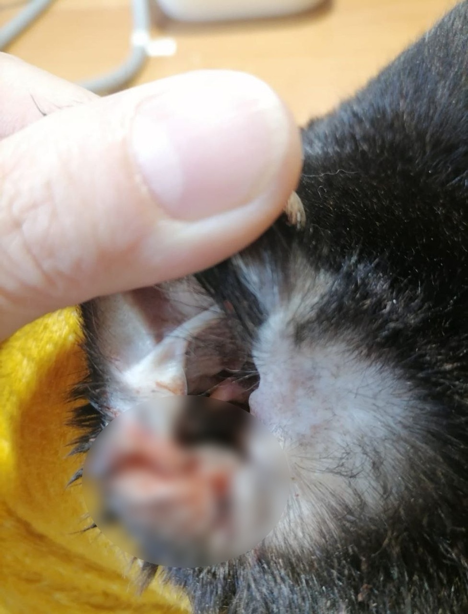 Срочно опять в клинику. Взяли соскоб из уха на бактерии, анализ будет готов в течении двух недель. Выписали очень сильное обезболивающее, потому что боль кошечка терпит очень сильную. Смотреть без слез на неё просто невозможно.