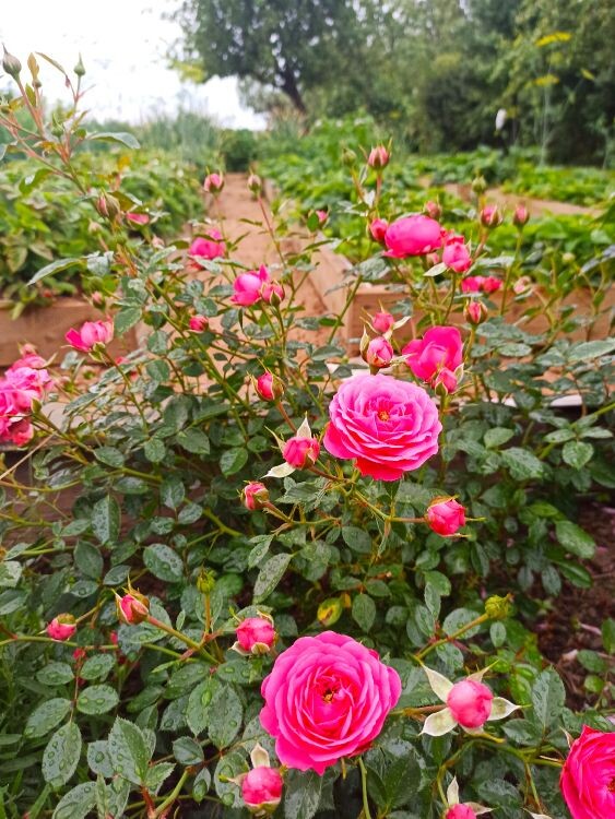 У моей сестры много цветов, и много розовых кустов