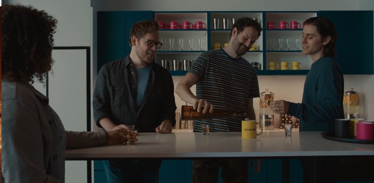 Сериал "Не сработало" 2022 (WeCrashed). рассказывает историю взлета и падения стартапа WeWork, основанного Адамом Нойманом. Увлекательная история, показывающая что происходит, когда компанию создает рок-звезда. Сериал привлекает меня не только сюжетом и актерской игрой, но и тщательно продуманными интерьерами, особенно офисов. Основной задачей художников-постановщиков было создание пространства, которое отражало бы дух и философию WeWork — инновационного стартапа, стремящегося к созданию сообщества единомышленников. Интерьеры офисов должны были передавать ощущение свободы, креативности и новаторства, а также демонстрировать стильный и современный дизайн. Контраст оранжевого и сине-зеленого проходит через весь фильм, создавая стиль. На этом кадре, где заряженный идеей герой представлен в окружении контрастов по этим цветам. Заметили? Одной из ключевых идей художников-постановщиков стало использование открытых пространств. Большие, свободные от перегородок офисы символизируют открыт