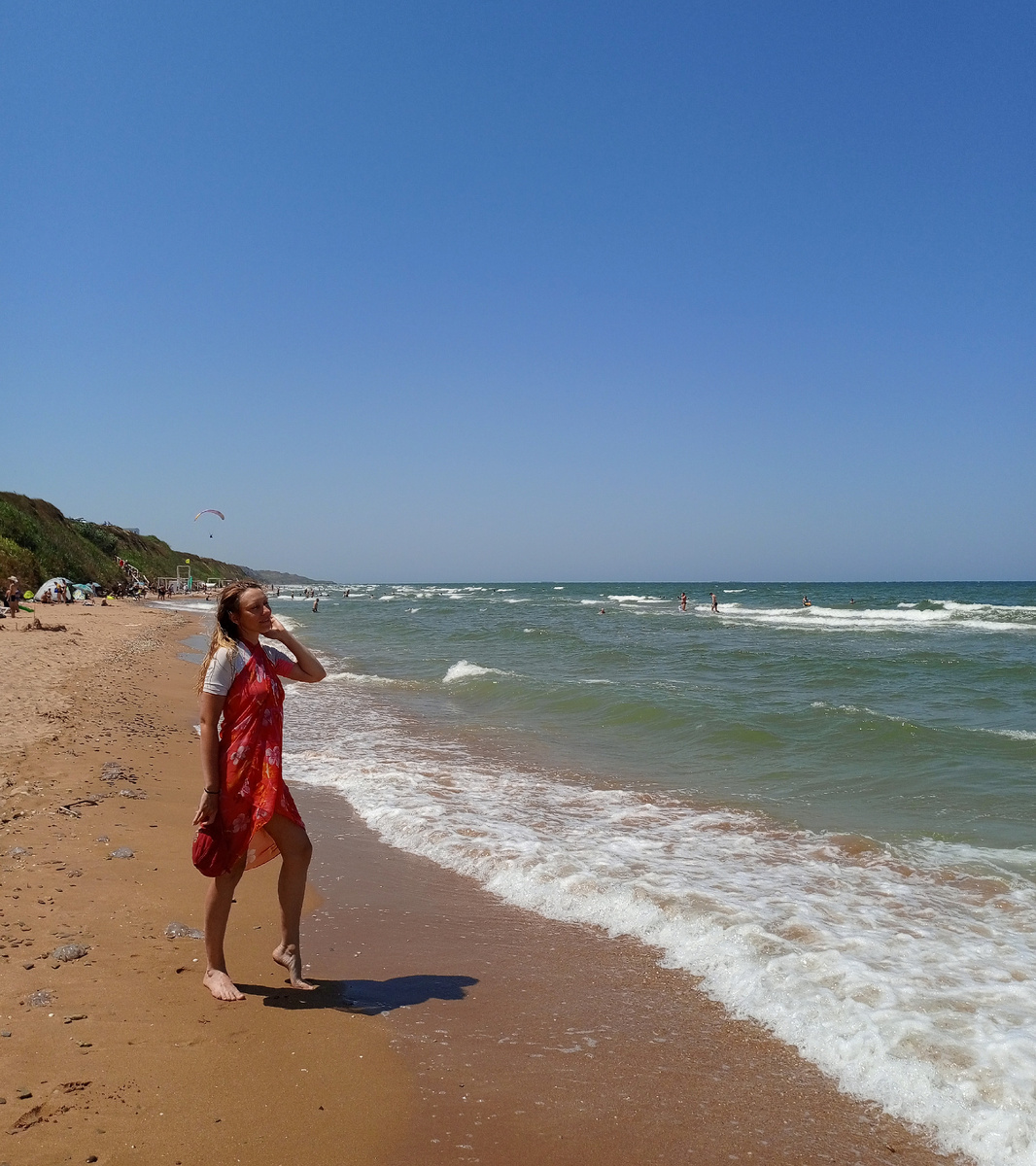 Подобрались славные фотографии с нашей поездки из Анапы на Азовское море. Поэтому начну наш рассказ с лучшего моря, что мы застали за весь отпуск. Черное море накрыло холодным течением, поэтому мы отправились ловить удачу на Азовское. От Анапы дорога занимает около 1,5 часов и один неприятный переезд (можно простоять до получаса). На обратном пути почему-то стабильно не работал GPS, показывал, что мы стоим в аэропорту Витязево (поэтому учимся ориентироваться по карте самостоятельно). И если накануне мы приехали в станицу Голубицкую, где нас ждал шторм и серое от песка и водорослей море с трехэтажными волнами, то на следующий день картина изменилась категорически, подарив нам "райское наслаждение". Температура воды - 28°, воздуха - 31°, песчаный пляж, небольшие волны, голубая и чистая вода. Главный недостаток Азовского моря - это большие с синенькой каемочкой медузы (хотя и на Черном море в один из дней они появились). В остальном здесь чудесно. Купаться в теплой воде с приятными в