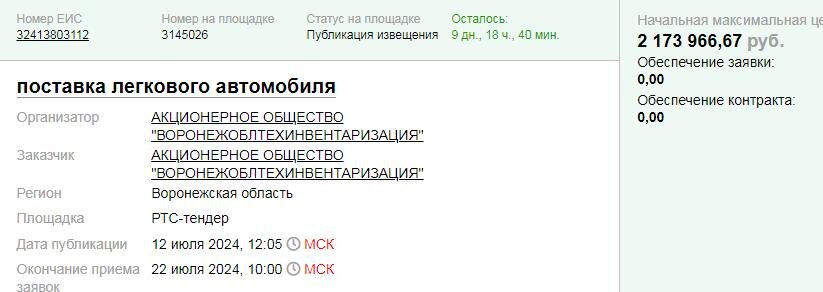 Информация по поставке автомобиля для организатора и заказчика торгов - АО «Воронежоблтехинвентаризация» - была опубликована на сайте госзакупок в прошлую пятницу, в документах не говорится, что для покупки будут привлекаться деньги облбюджета. Данная организация является крупнейшей в регионе, она оказывает услуги в сфере кадастровой деятельности и технической инвентаризации. Скорее всего, китайский кроссовер хотят купить для руководства организации. скриншот сайта госзакупок Однако финансовое состояние потенциального покупателя, по данным из независимых источников, выглядит не очень хорошо. В 2023 году, как и предыдущие три года, АО «Воронежоблтехинвентаризация» закончило с убытками. По прошлому году их размер был 13 млн рублей, а размер выручки сократился на 23 процента. скриншот из открытых данных, показатель прибыли АО «Воронежоблтехинвентаризация» "в минусе" несколько последних лет А потому намерение руководства учреждения купить иностранный кроссовер видится весьма странным. Вед