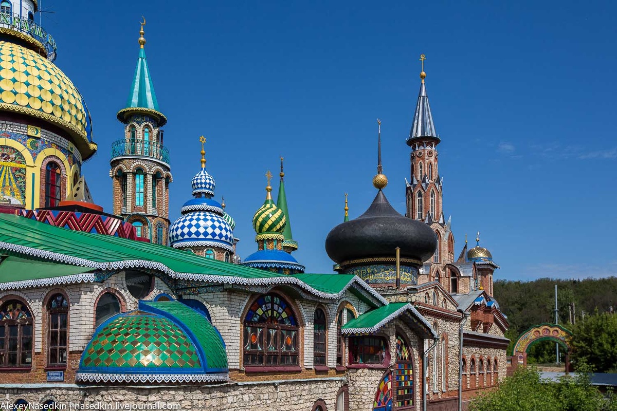 Эта фотография из посёлка Старое Аракчино под Казанью. Именно там дислоцируется яркое и необычное, слегка аляповатое, но оттого не менее привлекательное сооружение, по-татарски именуемое Барлык диннәр гыйбәдәтханәсе. А говоря по-русски - Храм всех религий. Ну и как же это согласуется с заголовком? Непросто теперь будет уживаться мировым религиям с исламом татарского розлива. Судите сами - на местном телеканале в видеоподкасте "Чай с хазратом" показали инструкцию о том, как правильно мужьям бить своих жён. В частности, имам казанской мечети "Ирек" Тимур Камаев ответил на вопросы мусульман по поводу рукоприкладства в семье. По его словам, нужно начинать с увещевания красивым языком, потом не делить с ней постель и в конце — побивать. А вот ещё на ту же тему: