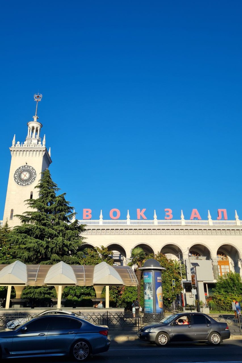 Когда нам надоедает лежать у моря в Дагомысе, мы просто собираемся и едем в Сочи. Благо жд станция всего в полутора шагах, и поезд доставляет в самый центр города за 15 минут. За это время даже отсутствие сидячих мест и толчея в электричке не успеет вас расстроить. В этот раз мы с дочками не преследовали определенную цель. Просто пошли прогуляться, а девочки захотели в очередной раз покататься на аттракционах. Поэтому конечным пунктом был выбран сочинский парк Ривьера. Прибыли на железнодорожный вокзал Сочи, полюбовались снова открыточным видом. Протиснулись сквозь живописные заросли олеандров и оказались на главной туристической тропе - Навагинской улице. Признавайтесь те, кто бывал на курорте, ведь захаживали на Навагинскую? Здесь сосредоточено множество магазинов, кафе, ресторанов. Да и просто приятно пройтись по зеленому променаду, любуясь южными растениями. Можно присесть на одну из множества скамеек, или, как мы, покачаться на необычных качелях. К тому же в этот раз здесь разв
