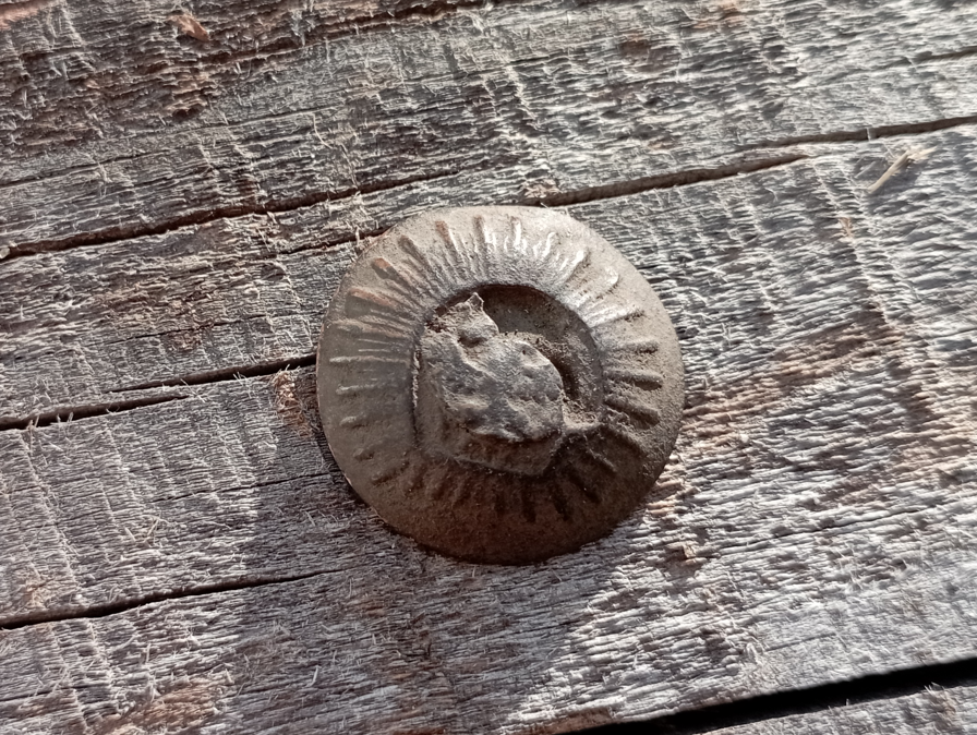 Сегодня впервые попалась пуговица интересного типа. Вообще, мундирные пуговицы, особенно орлянки, встречаются очень часто. За год можно найти 20-30 штук разного вида. Уже трудно чему-то удивиться. Только если какие-то номерные или губернские вдруг попадутся. И вот, значит, вот такая пуговица: К сожалению, в центре дефект. Видимо, часть просто выкрошилась. Там должен быть изображен двуглавый орел. Подобные пуговицы я уже видел в каталогах, да и в Интернете тоже, а потому особых надежд, что это "раритет", не было. Запрос в Интернете по типу "мундирная пуговица лучи солнца" мне сразу же выдал аналогичные результаты. Так я узнал, что данная пуговица является "кадетской". Их изготавливали в период с 1902 по 1917 годы. Существует множество разновидностей, а цена в среднем начинается от 250 рублей, если пуговица имеет хорошее состояние. Моей находке не повезло. Но такое бывает. Сейчас эту пуговицу почищу и положу в планшет за неимением других данного вида. Может быть больше такие и не