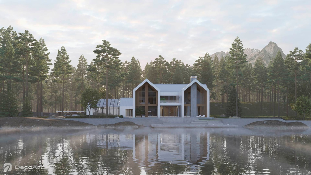 В основе архитектурной концепции лежит идея дома в стиле барнхаус. Усадебный комплекс включает в себя: непосредственно дом с оранжереей, навес для автомобилей, эллинг с баней, причал с каминной зоной. Усадьба — это аналог особняка, который находится вдали от цивилизации и обычно включает дополнительные постройки, такие как беседки, парки и бассейны. Более подробно ознакомиться с проектом #ладога@dekoart_design можно на сайте https://decoart.pro 📝Для расчёта дизайн - проекта, напишите нам 👉 DecoArt 🤍💙🤍 Подписывайтесь на наш канал, мы будем делиться своими дизайн-проектами, а вы их оценивать, ваш DecoArt 🤍💙🤍