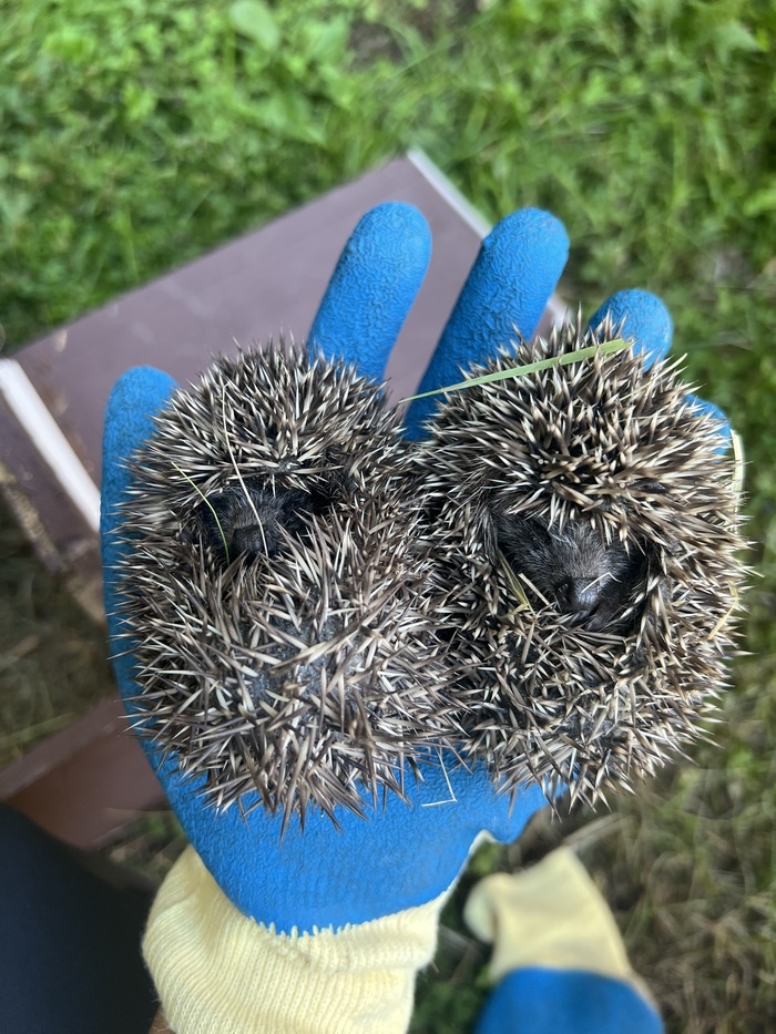 Восьмой день жизни ежиков, оставшихся без мамы. Новости за сегодня очень приятные, если вчера вечером ежата из живого корма съели лишь самых мелких червячков, и все таки переключились на сухих насекомых и корм для котят, то сегодня весь день с самого утра они лишь на живом корме и стали уплетать всех, включая саранчу. Соседи, которые и принесли нам ежат, помогли с покупкой и доставкой насекомых, за что большое им спасибо от меня и малышат. Побоялись мы с супругом выпускать ежиков в свободную жизнь на участке, не смотря на зеленый свет на это от двух специалистов, все таки они еще не очень хорошо откормились, на наш взгляд. Но и оставлять их жить исключительно в домике уже кажется не совсем правильным. Поэтому ежики гуляют под присмотром, вечером как человеческий ребенок уснет, пустим снова на променад. На прогулках ежики не спешат удрать, обнюхивают окружающий мир и друг друга. Один приобрел совсем уж бандитский характер и иногда фыркает на приятеля. Охота на прогулке пока не удалась,