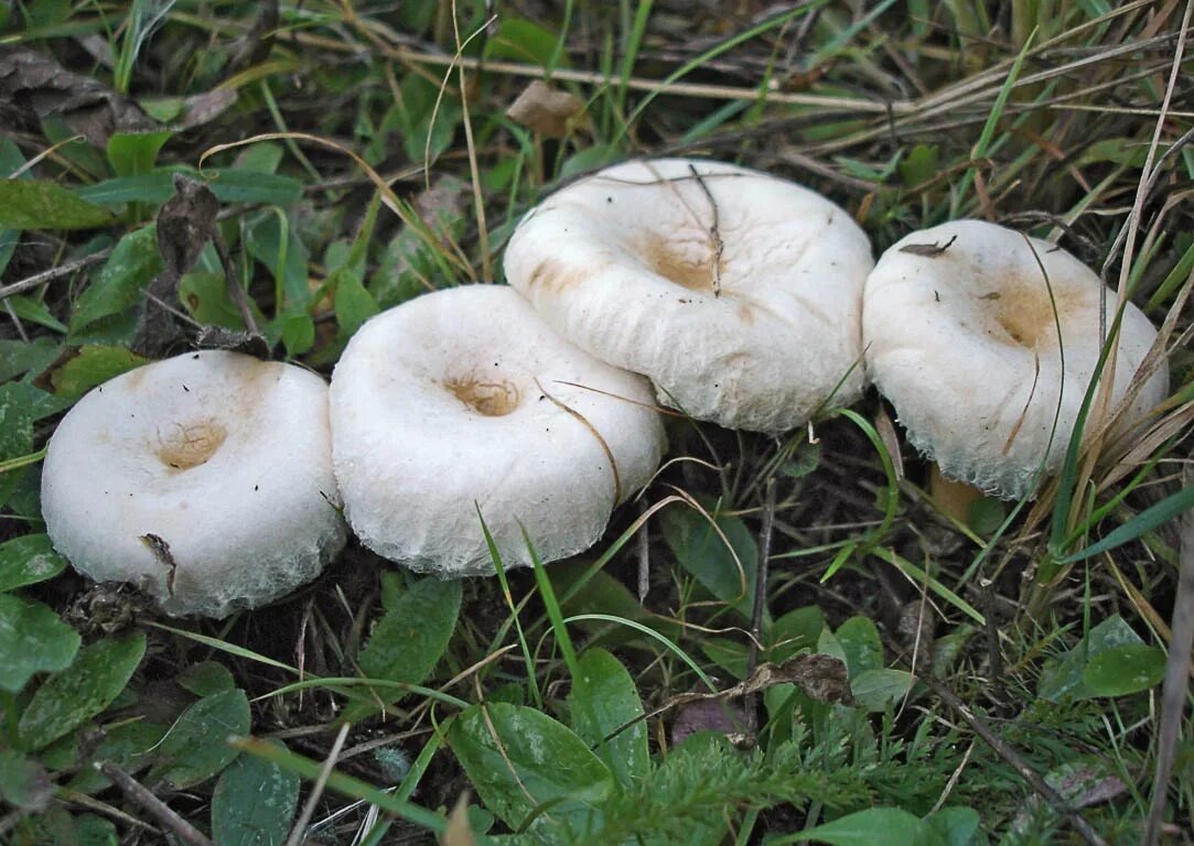 Шляпка белой волнушки в диаметре может достигать 12 см, в центре можно увидеть небольшое углубление, при этом края будут подвернуты. Со временем они раскрываются, а у старых грибов шляпка приобретает форму воронки. Отличительная особенность этой волнушки – чрезмерная «волосатость» шляпки, оттенок которой варьируется от белого до розоватого. Примечательно, что шляпка старой волнушки может окраситься в желтый цвет! Определить волнушку просто – достаточно разрезать шляпку пополам, после чего из мякоти выделится белый сок. Попробуйте его на язык – вкус будет очень жгучим! При этом волнушка очень приятно пахнет.