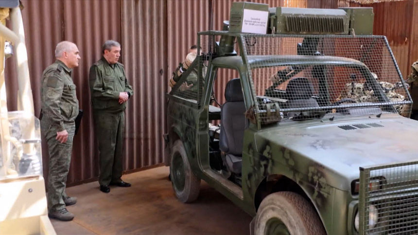 Кроме того, Герасимов ознакомился с образцами роботизированных комплексов, успешно применяемых в штурмовых действиях. Генералу также продемонстрировали систему защиты от FPV-дронов «Тритон» и мобильный комплекс для радиоподавления «Гроза».