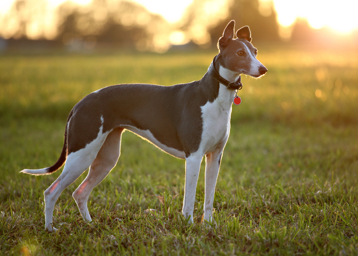 Гладкошерстные борзые с затянутым ухом появились в Англии примерно в 9 веке. Но на самом деле достоверно неизвестно, как именно была выведена данная порода. Есть версии о предках из Древнего Египта, или из Греции. Считается, что одного грейхаунда даже купил за несметные богатства Александр Македонский. А в античных мифах и вовсе богов часто сопровождали похожие гладкошерстные псы. В общем, история покрыта завесой тайны.