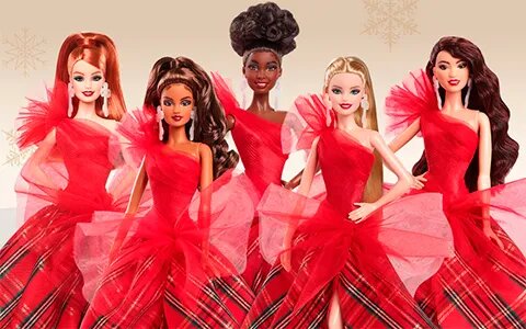 Первыми на кого я обратила внимание, стала пятерка Барби Холидей. Рождество еще только через полгода, а анонс Барби к празднику уже есть, но так и бывает обычно, что промо новогодних Барби появляются в середине лета. И вот кто у нас есть: блондинка, афро, латинка, азиатка. В принципе, все как обычно, традиционно.
