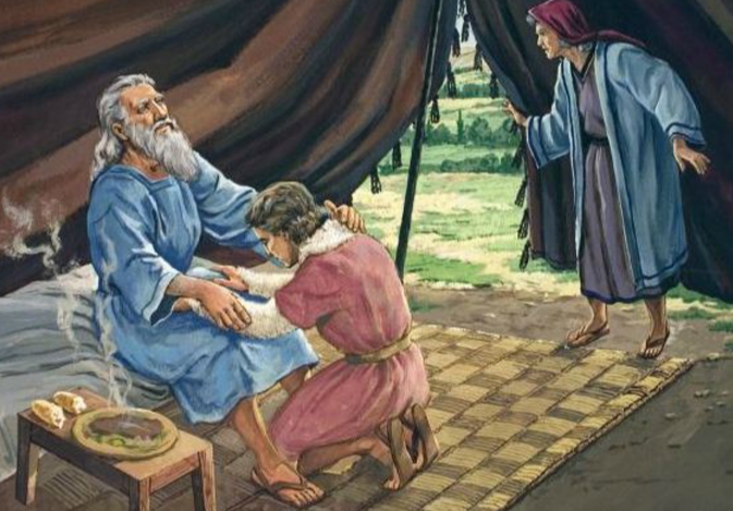 Первая сцена в этой трагедии создает атмосферу напряжения, скверных отношений и пагубных действий, которая затем сохраняется на протяжении всей главы 27. Достигнув преклонного возраста, Исаак решил, что настало время для предсмертного благословения его старшего сына, Исава (Быт. 27:1-4). Он вознамерился сделать это, несмотря на божественное пророчество, которое получила Ревекка во время своей трудной беременности: «...больший будет служить меньшему» (25:23).