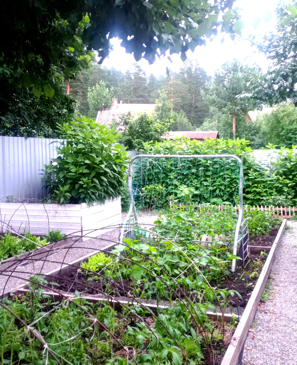*сад,огород,домашние питомцы. 15-16 июля 2024 г Доброе утро,день или вечер,дорогие читатели! Конечно, когда я нахожусь в саду,то и домашние питомцы рядом,они мои помощники.Так они думают.Амна деле крутятся под ногами и всё тут. Весь понедельник и вторник с утра, то дома готовила,то в саду порядок наводила, а за мной ходил наш зоопарк. Что-то растёт в огороде,но без особого энтузиазма. Я постоянно что-то переставляю, не только в доме,но и в саду, всё мне не так,то не эдак. Например сыну,когда бреет траву всё мешает, где трава растет Вот как тут быть? По его мнению на поляне и в саду где трава, ничего не должно мешать проходу газонокосилке. Сначала убрала мостик на щебень за теплицы.,чтобы не мешал,туда же импровизированный водоём из детской песочницы. Кстати,крутая вещь детская пксочница и есть крышка.На ночь можно закрыть. Эта песочница досталась нам в наследство от прежних хозяев и много лет я её использовала для воды.Набрала,накрыла и потом поливала огород этой водой. Как раз м