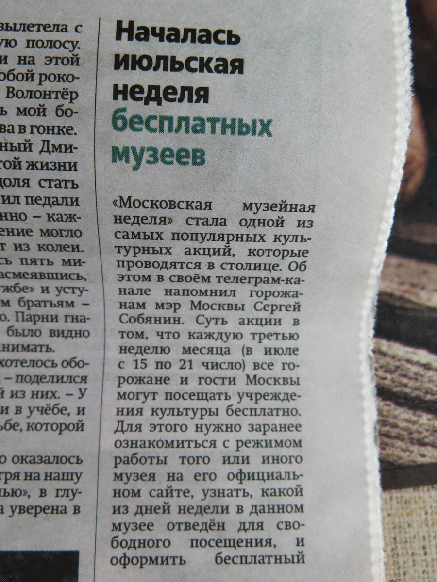 В прошлый раз там писали по конку и день Московского транспорта. А сегодня - про музеи и прочие экскурсии.