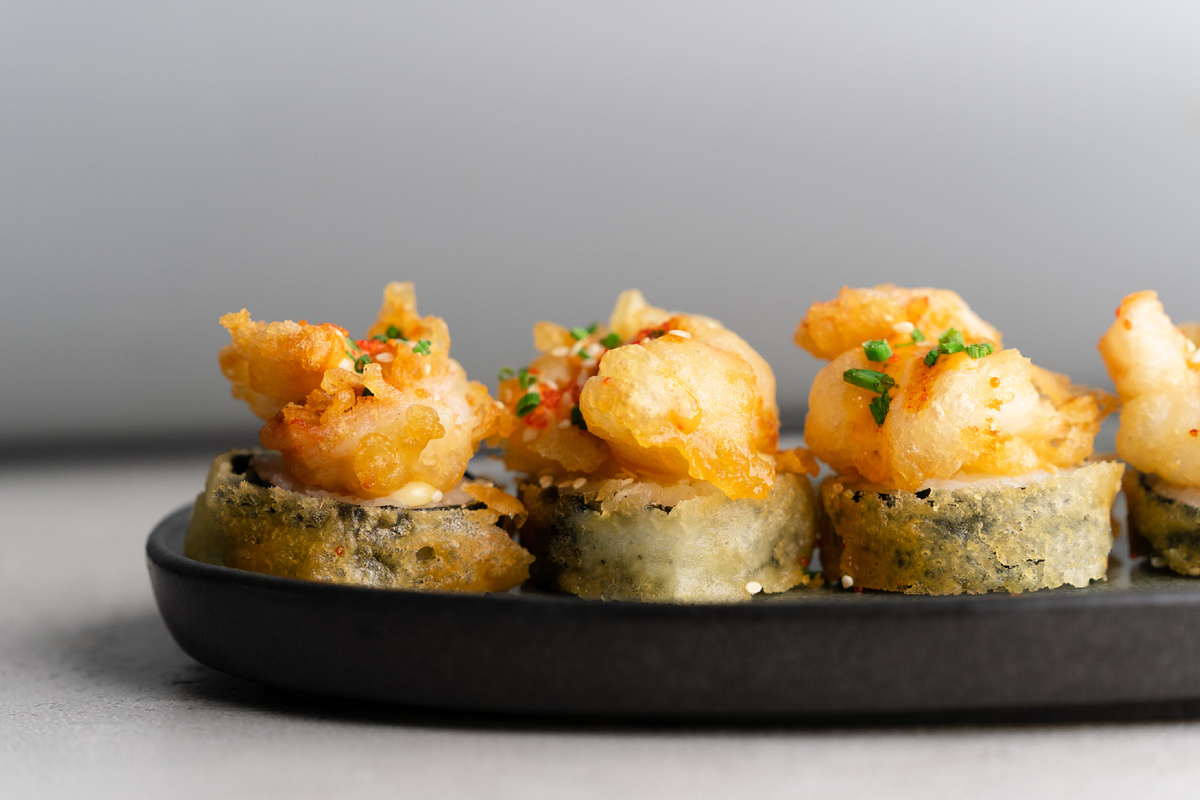 - Креветки темпура – мясистые, большие и сочные: от 4 до 12 штук.