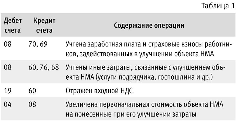 Включение затрат на модернизацию в стоимость НМА