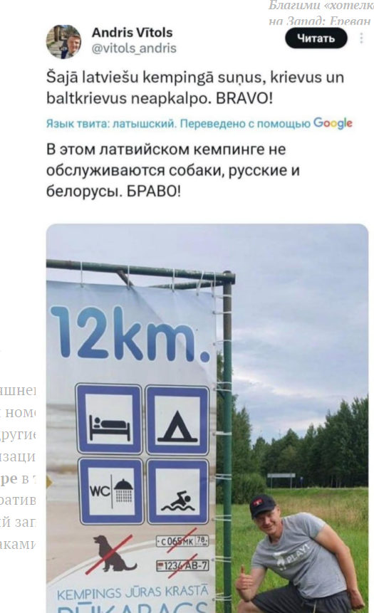 Автомобилям с выданными в Белоруссии регистрационными номерами (ранее это уже коснулось российских) нельзя въезжать в Латвию и другие страны ЕС, пересекая восточную границу. Однако аппетиты по стигматизации у профильного ведомства растут. Министр юстиции Инесе Либиня-Эгнере в телепередаче «Утренняя панорама» (Rīta Panorāma) поделилась административным восторгом — её подчинённые спешно разрабатывают полный запрет на участие в дорожном движении для машин с такими (российскими, белорусскими) номерными знаками.