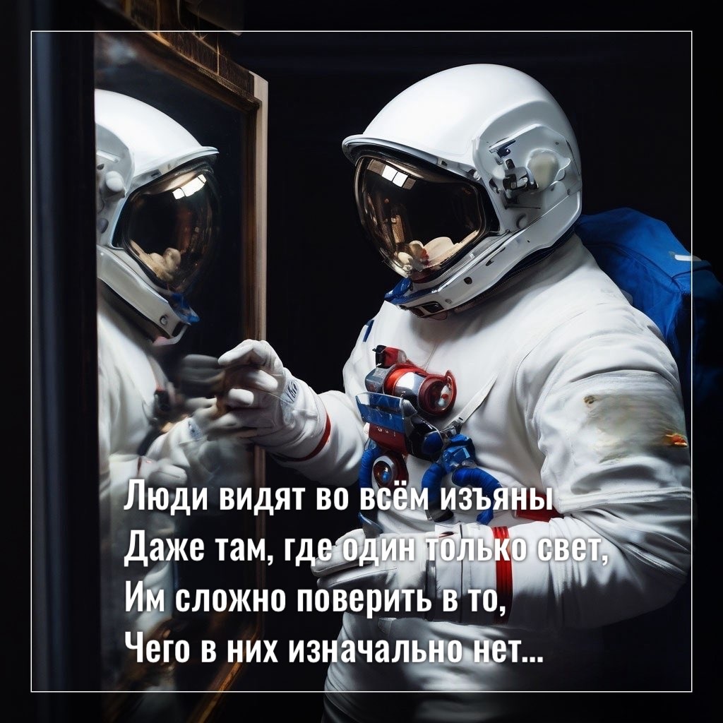 Люди видят во всём изъяны Даже там, где один только свет, Им сложно поверить в то, Чего в них изначально нет. То, что есть, они осуждают, Но в себе это видеть не могут, Менять хотят всех вокруг, Претензии шлют Богу, А Бог всех послал как зеркало, Чтобы люди заметить могли, Смотря на других людей, Что у них есть внутри. Простая загадка, несложная, Но поверить дано не всем, Что себя лишь меняя тихонько, Избавитесь от проблем, От болезней, от недомоганий, От упадка сил и неудач. Человек себе сам судья, Убийца, спаситель, врач.