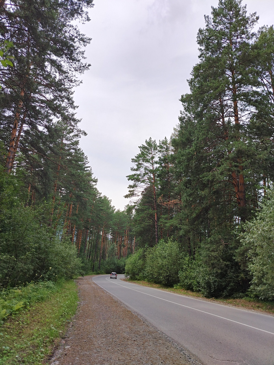 Гроза приближалась очень быстро, явно было, что она придет раньше, чем автобус. Решили выйти на дорогу и голосовать, но оказалось не просто, машины шли заполненные, так как на озеро приезжают семьями, компаниями. Наконец остановилась молодая пара из Красноярска, забрал нас. Они рассказали, что приехали прокатиться на канатной дороге, но из-за грозы ее работу остановили и те, кто уже наверху, будут пережидать грозу в павильонах.