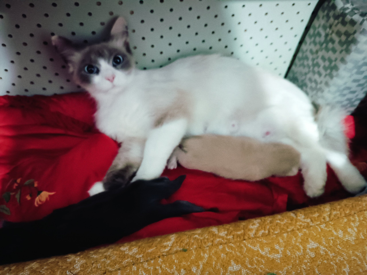 Два хвостика готовы стать вам верными друзьями, весёлыми игрунами и главными специалистами по борьбе со стрессом и скукой. Главное, не пройти мимо Это случилось дождливым вечером. Казалось, только что сияло на лазури солнышко, и вдруг грозными батальонами набежали серые тучи, загремела высь. Я спешно забежала в подъёзд. На последнем этаже заметила беременную кошку, тоскливо глядящую в окно. Голубоглазая полукровка-сиамка, завидев меня, выгнула спину и потерлась о ноги, будто умоляя о помощи. «Судя по всему, она домашняя, – смекнула я. – В ней нет одичалости, зато есть безграничное доверие к людям». Но как это ласковое создание оказалось здесь, ведь по запылённой шубке было видно, что грациозная красавица блуждала по улице не меньше чем неделю. Хозяева отпускали на самовыгул? Тогда почему они её предварительно не стерилизовали, что куда гуманнее, чем топить котят или выгонять несчастное животное из дому. Да и как может подняться рука на такое мохнатое чудо?! 17 июня голубоглазка окоти