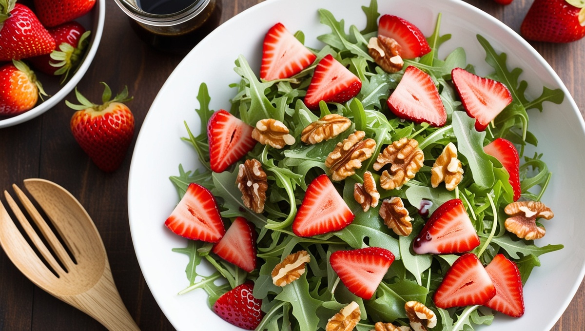 Лето - время свежих фруктов и овощей, а что может быть лучше, чем сочетание сочной клубники и горьковатой рукколы? Этот простой, но изысканный салат станет отличным вариантом для легкого обеда или ужина, а также прекрасно подойдет для пикника. Ингредиенты: • 150 г клубники, нарезанной ломтиками • 100 г рукколы • 50 г грецких орехов, поджаренных и порубленных • 2 ст.л. бальзамического уксуса • 4 ст.л. оливкового масла • Соль и свежемолотый черный перец по вкусу Приготовление: 1. Подготовка: Помойте и обсушите клубнику и рукколу. Поджарьте грецкие орехи на сухой сковороде до золотистого цвета и порубите их. 2. Заправка: В небольшой миске смешайте бальзамический уксус и оливковое масло. Добавьте соль и перец по вкусу. 3. Собираем салат: В большой миске смешайте клубнику, рукколу и грецкие орехи. 4. Заправка: Залейте салат заправкой и аккуратно перемешайте. 5. Подача: Разложите салат по тарелкам и подавайте сразу же. Советы: • Для более сладкого вкуса добавьте немного меда в заправку. • В
