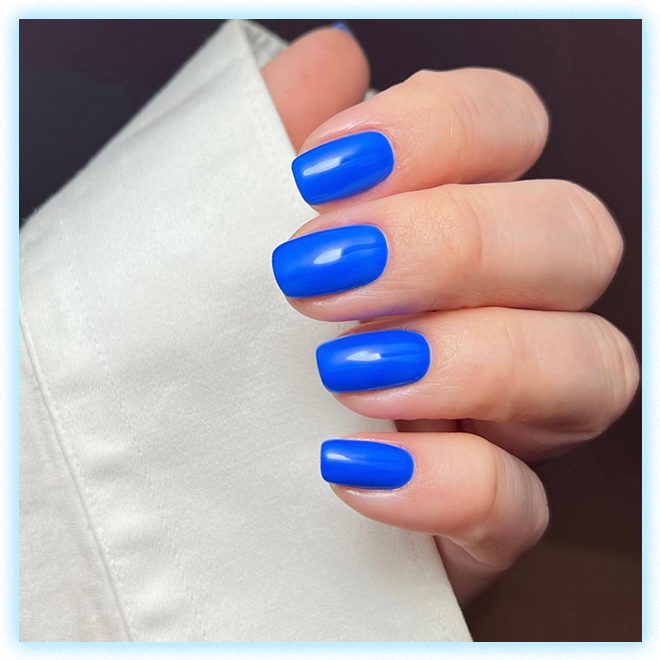Идея делать маникюр дома самостоятельно кажется невероятной только зумерам. Женщины, заставшие хотя бы 90-е, в цирке не смеются и могут дома после работы собрать компьютер из комплектующих, не то что накрасить ногти. Домашний маникюр здорово экономит время на дорогу в салон и обратно, а также избавляет от необходимости вести с мастером невероятно захватывающие разговоры в духе: «А ты чо? А он чо? Да ты чоо?!». С плюсами разобрались, поэтому переходим к вариантам. Все оттенки этого цвета уверенно держатся в топе уже не один месяц. Во-первых, синий — красивый и благородный, во-вторых, он напоминает о море, которого нам так не хватает. Самым популярным считается оттенок электрик, но к месту будут все варианты синего. Из дизайна летом очень актуальны морские узоры — рисуем по памяти, кто же помнит, как оно выглядит на самом деле. Можно попробовать в одном маникюре сразу несколько оттенков синего, расположив их на пальцах от самого темного к самому светлому. В тренде ногти, напоминающие в