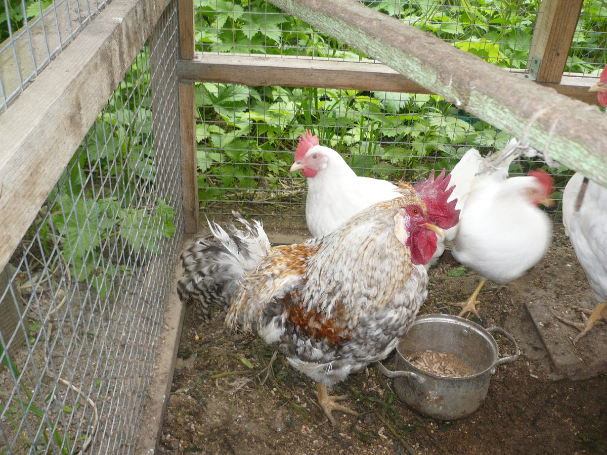 Еще одна изъезженная тема. Нужен ли петух. Поделюсь своими наблюдениями. Конечно, куры будут нестись и без петуха, это понятно, но. Петух в первую очередь, смотрящий за стадом. Он держит порядок, не дает ссорится. Особенно это актуально, если куры разных пород и возраста. Петух первым пробует новую пищу и зовет остальных. В прошлом году куры не клевали яблоки, даже спелые. Купил петуха, тот попробовал, что-то им кукарекнул – стали клевать, причем с аппетитом. Петух вечером загоняет кур в курятник. Без него они могут загуляются до темноты, потом наступает куриная слепота и они бегают, тыкаются башкой в сетку, не могут найти вход и орут. Утром петух не дает спать соседям, если у вас война, тоже плюс. Ну и смотрит за опасностью сверху либо с земли – коршун, хищник или собака какая. Многие пишут, что место петуха может занять доминирующая курица. В этом году представился случай это проверить. После апрельской потери почти половины поголовья, встал вопрос о пополнении стада. В начале месяца