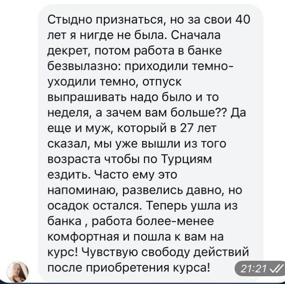 Дорогие, вы так много пишите сообщений о том, что не успели реализовать из-за графика работы/ мнения близких/ страхов, но никогда не поздно это сделать. Благодарю вас за то, что пишите и делитесь своими историями - это очень ценно для меня 🙏 Всем нам хочется одного и того же: По-другому это можно назвать настоящей свободой. Когда мы сами выбираем, какой будет наша жизнь.