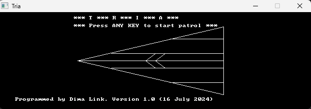 Триа – простая космическая стрелялка. Идея игры - простой космический шутер. Псевдо трехмерный. И все выполнено в черно белом виде. Белыми линиями нарисованы космические корабли, звезды, лазеры. И черный фон космоса. Еще, конечно, игрушка сделана под впечатлением от просмотренного недавно фильма Звездные Войны Эпизод 6. Из 80ых годов. Ретро фантастическая тема.