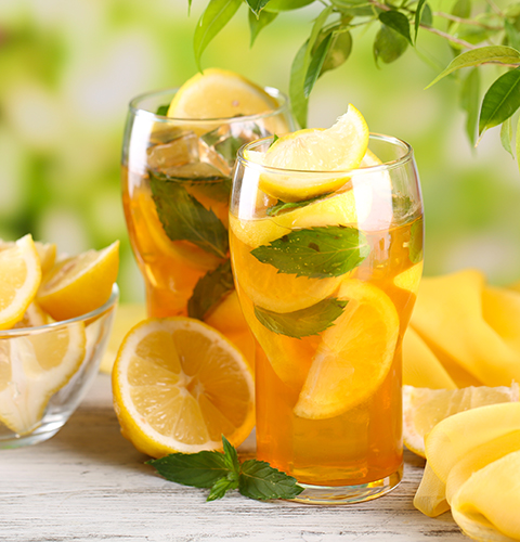 Лето — время ярких красок, тепла и, конечно же, освежающих напитков. И что может быть лучше, чем прохладный, ароматный чай со льдом, который подарит вам волну свежести и бодрости в жаркий день? Вам понадобятся: Способ приготовления: Шаг 1: Лимон и апельсин очистите от цедры и выжмите из них сок. Заварите в чайнике черный или зеленый чай, смешав его с цедрой цитрусовых. Шаг 2: Готовый напиток охладите, а затем смешайте со свежевыжатым соком и украсьте мятой. Подавайте к столу с нашим пирогом «С вишней». Его яркий ягодный вкус станет отличным дополнением к напитку.