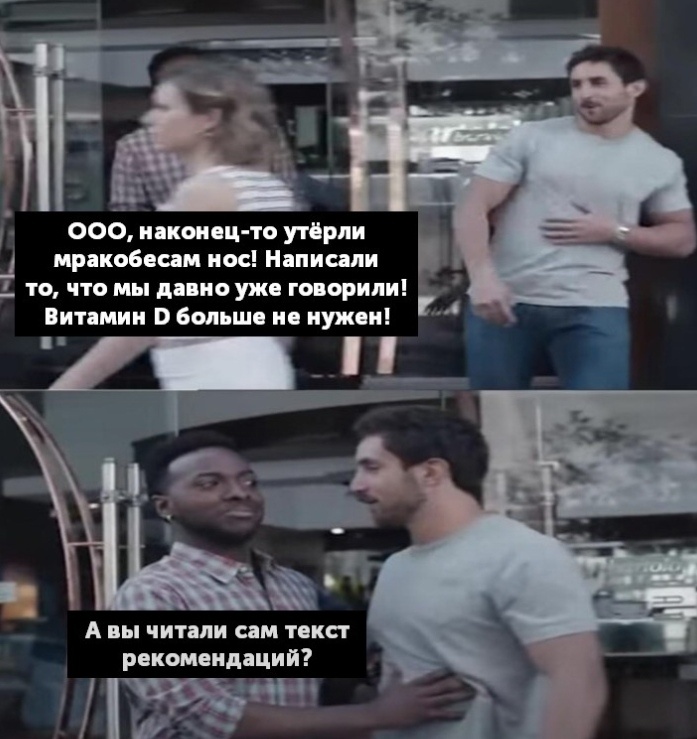 И еще топовая для меня фраза "Эксперты конкретно не рассматривали вопрос, что делать и как лечить пациентов с низким уровнем витамина Д".