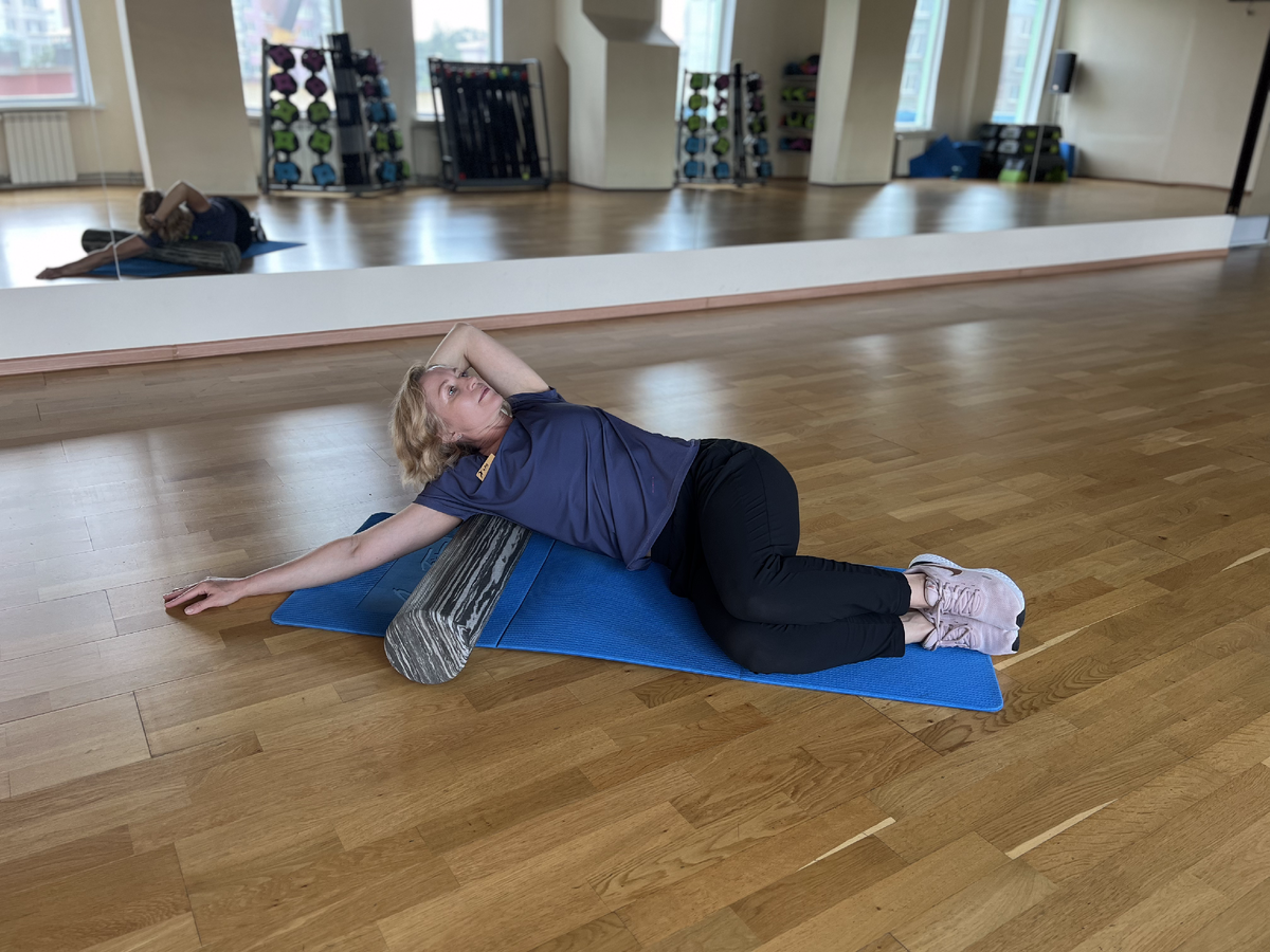 1. Вращение грудного отдела позвоночника лежа на роллере