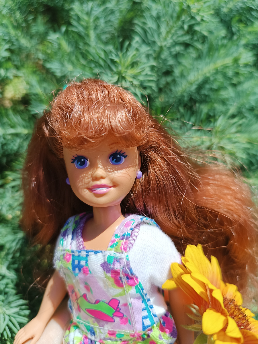 Последнее время ко мне приезжают либо Кены, либо детки) Вот и в этот раз) Барби устраивает личную жизнь с Кевином❤️ не забывая заботиться о Келли, Нелли и Томми (каково звучит, а😊). Скиппер сдружилась с кузиной Джаззи, а вот возраста Стейси у меня никого нет... надо это исправить, подумала я и купила Уитни, ее подружку по легенде маттел. Первое фото с прогулки, челлендж никто не отменял💪 Stаcie Whitney Polly Pocket 1994г, если официально )) давненько я поглядывала на эту девочку у Культовой куклы, думала, что купили уже, ан нет, меня ждала) Забегая вперед, скажу, что каждая малышка в моем кукломире является родней кому-нибудь из взрослых. Глядя на её фиолетовые глазки, сразу подумала о Терезе, но у неё Тэмми недавно появилась и свадьба с Майклом скоро...а кто у меня такая же рыжая красотка? Правильно, Ребекка Шанталь. Уитни будет ее младшей сестрой) А теперь фото с прогулки со Стейси, Скиппер и Джаззи) Чудесный Смурфик приехал в подарок от продавца wb с маской пирата, заказанной сыну