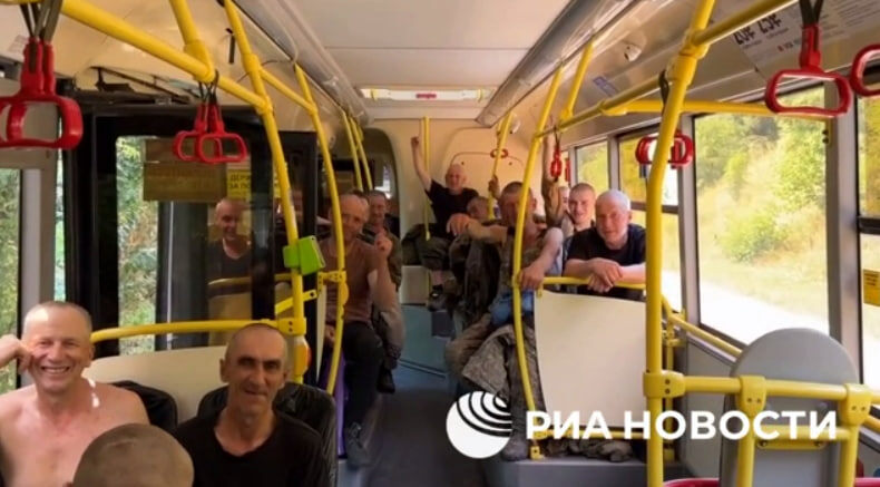 Кадры возвращения 95 российских бойцов из украинского плена