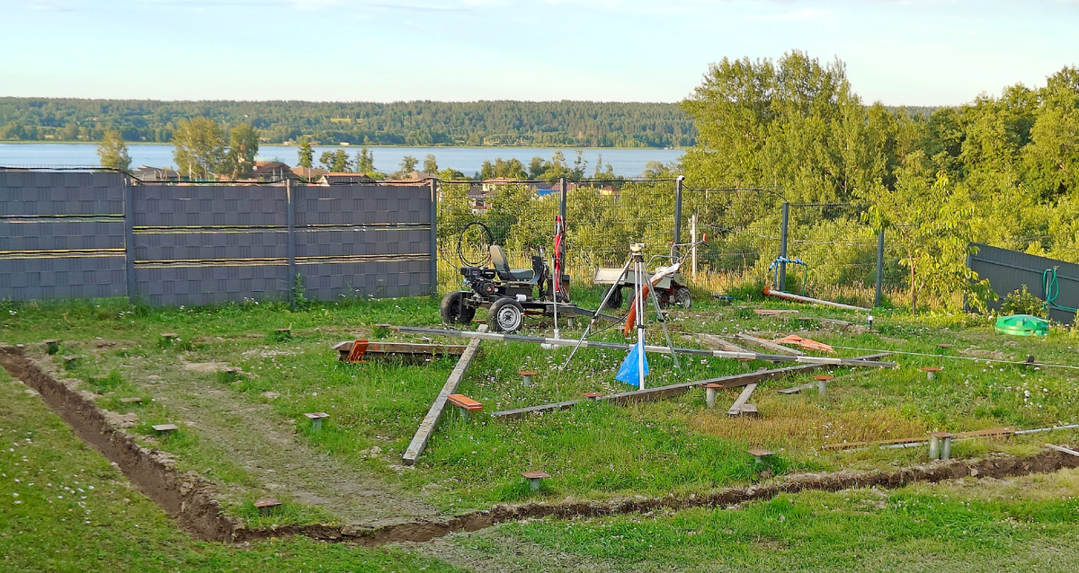На этом нулевой цикл строительства завершён: фундамент, дренаж, подвод коммуникаций. В будущем сезоне можно начинать строить каркас.