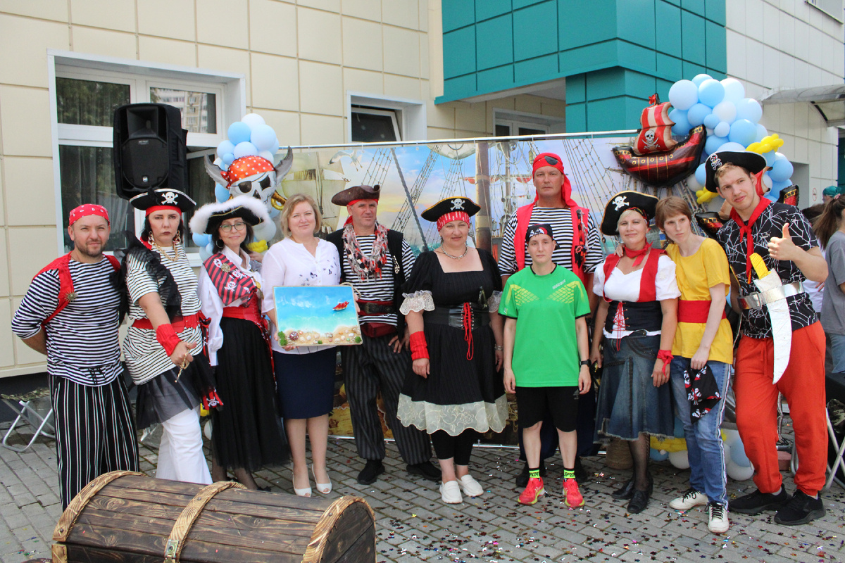 В особом семейном центре «Роза ветров» прошло очередное мероприятие – игровой квест «Сундук старого пирата», в котором приняли участие воспитанники особых семейных центров и ребята из Социальных домов. Территория особого семейного центра «Роза ветров» превратилась в настоящий пиратский корабль, на котором собрались воспитанники особых семейных центров для прохождения квеста «Сундук старого пирата». Игровой квест открылся танцевальным флешмобом, где инструктора по адаптивно-физической культуре особого семейного центра «Роза ветров» танцевали вместе с гостями праздника, которые двигались в едином ритме танца. Прежде чем отправиться на поиски сокровищ, ребятам предстояло пройти обряд посвящения в пираты, узнать целую историю из пиратской жизни и отгадать все загадки о пиратском быте. Открыв бутылку с посланиями, ребята узнают о неожиданной встрече… Ну конечно, это пиратская шхуна «Шалопаи Севера». Дружные и обаятельные маламуты завоевали внимание всех гостей праздника, устроив настоящий о