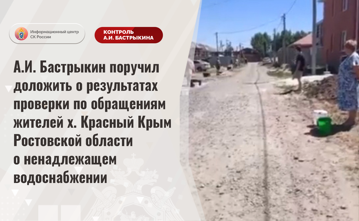 А.И. Бастрыкин поручил доложить о результатах проверки по обращениям жителей х. Красный Крым Ростовской области о ненадлежащем водоснабжении
