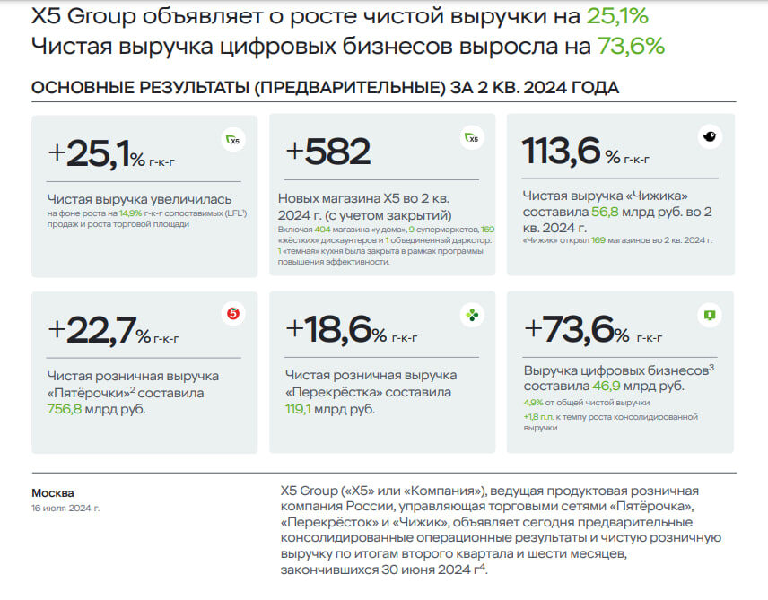 5 недавно поделилась операционными результатами по итогам 2 квартала 2024 года: