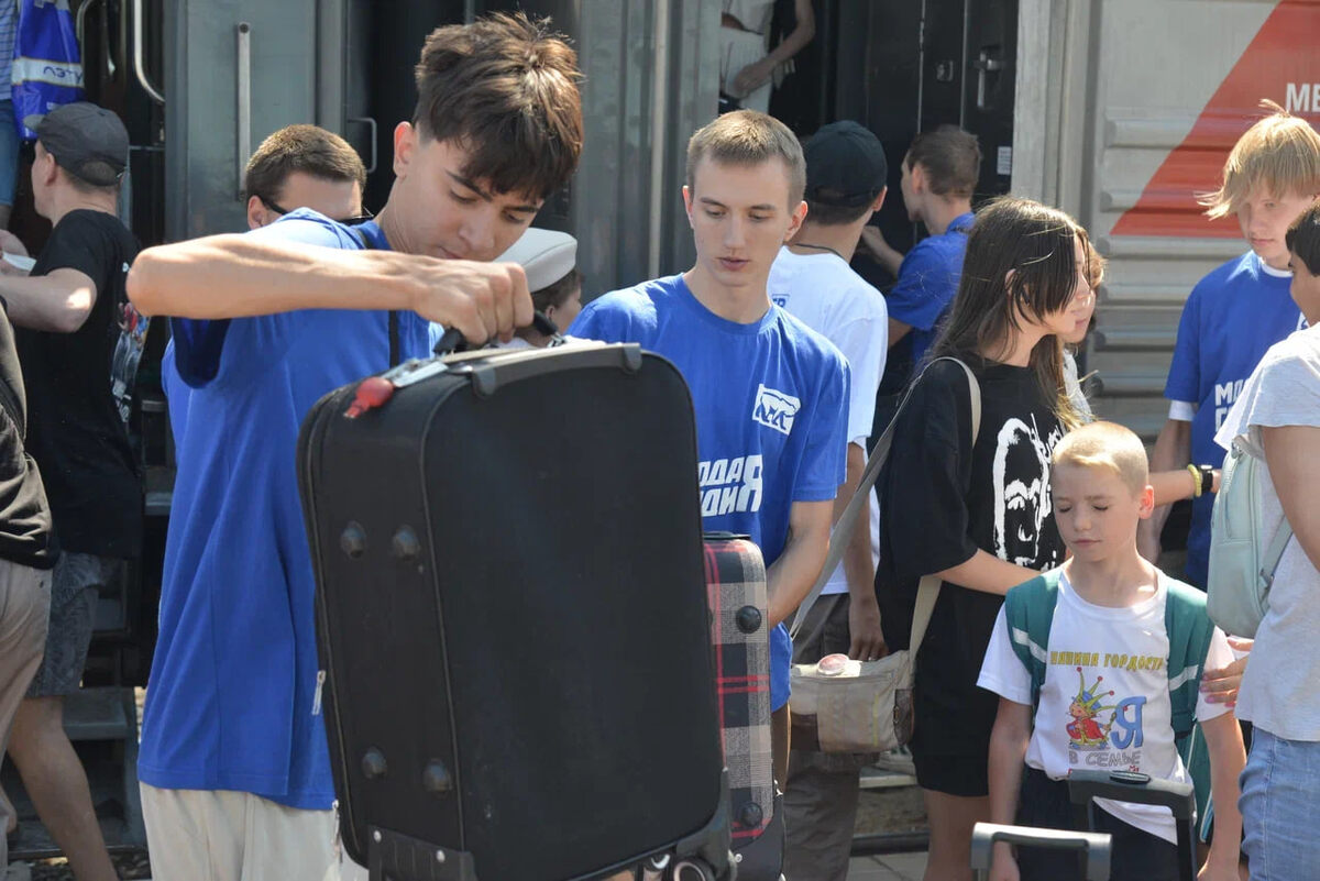 Дети из подшефного города Снежное провели в Самарской области 21 день в детском оздоровительном центре «Берёзки». Для ребят были организованы образовательные, культурные и оздоровительные мероприятия, а также экскурсии по Самарской губернии. Активисты «Молодой Гвардии» помогли ребятам донести вещи, проводили в зал ожидания, а затем - до вагонов.