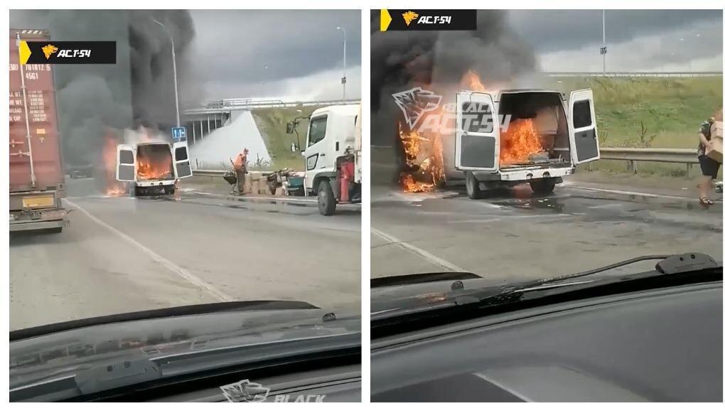 На Северном объезде в Новосибирске произошло возгорание грузового автомобиля «Газель». По информации АСТ-54, огонь полностью охватил кабину транспортного средства рядом с поворотом на Пашино. На видео, опубликованном в социальных сетях, видно, как двое мужчин перетаскивают коробки вдоль дороги, в то время как кабина автомобиля полностью охвачена пламенем. По данным ГУ МВД по Новосибирской области, полиция получила сообщение о происшествии. По предварительной информации, пострадавших нет. В настоящее время проводится проверка обстоятельств произошедшего. Ранее Сиб.фм сообщал, что в Новосибирске строитель упал с четвертого этажа и повредил конечности.