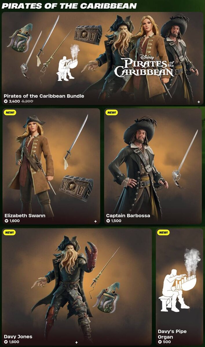Fortnite продолжает радовать своих игроков яркими коллаборациями. На этот раз поклонники игры и киновселенной «Пиратов Карибского моря» могут отпраздновать новое событие – появление уникального бандла с персонажами и предметами из любимого фильма. Состав бандла включает в себя: Дополнительные предметы в бандле: Эмоции и уникальные жесты: Полноценная коллаба, получившая название «Проклятые паруса», состоится 19 июля. В этот день все игроки смогут приобрести бандл и окунуться в атмосферу морских приключений и пиратской романтики. Не упустите шанс пополнить свою коллекцию уникальными предметами и персонажами из «Пиратов Карибского моря» в Fortnite!