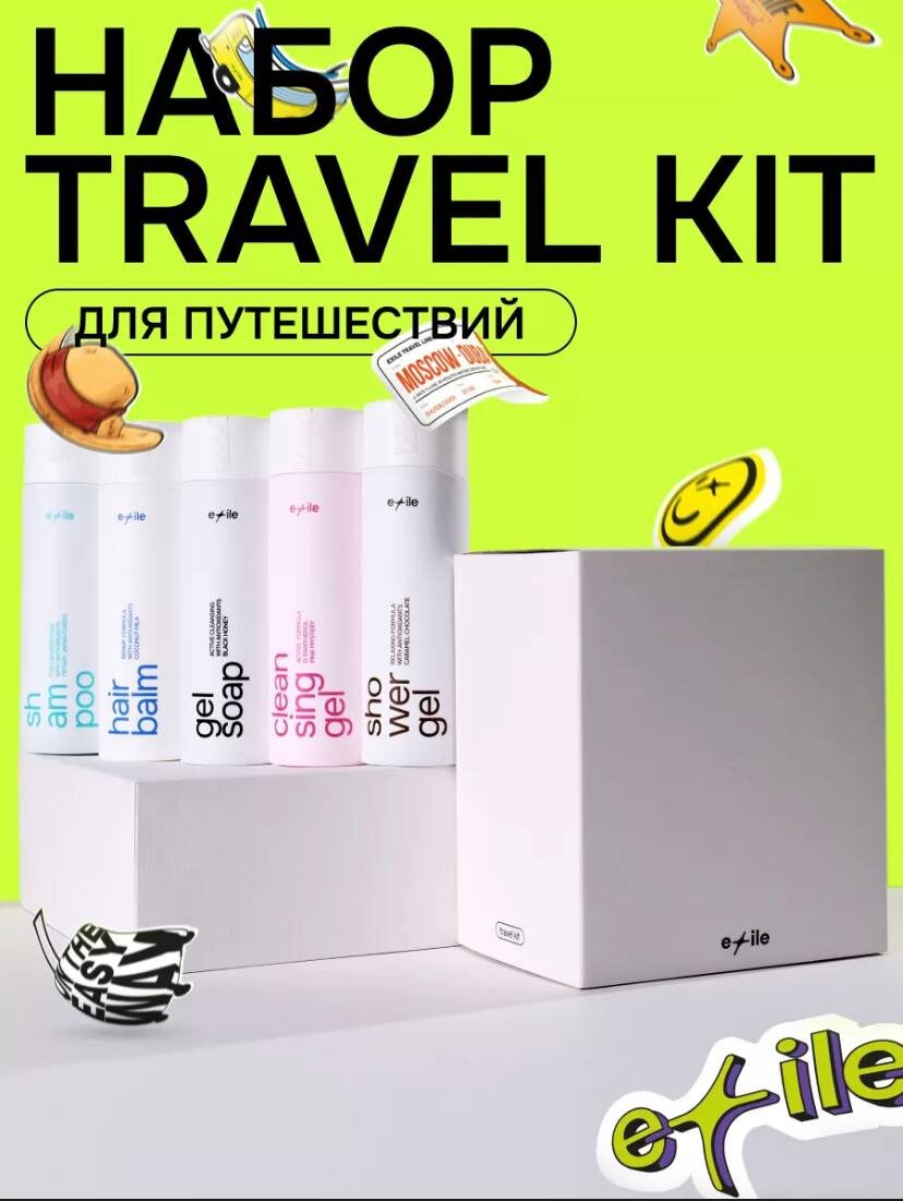 Набор я нашел на WB, стоит он на данный момент 2574. Набор называется "Travel Kit" от бренда "Exile". Он включает в себя 5 баночек, заветных жидкостей: