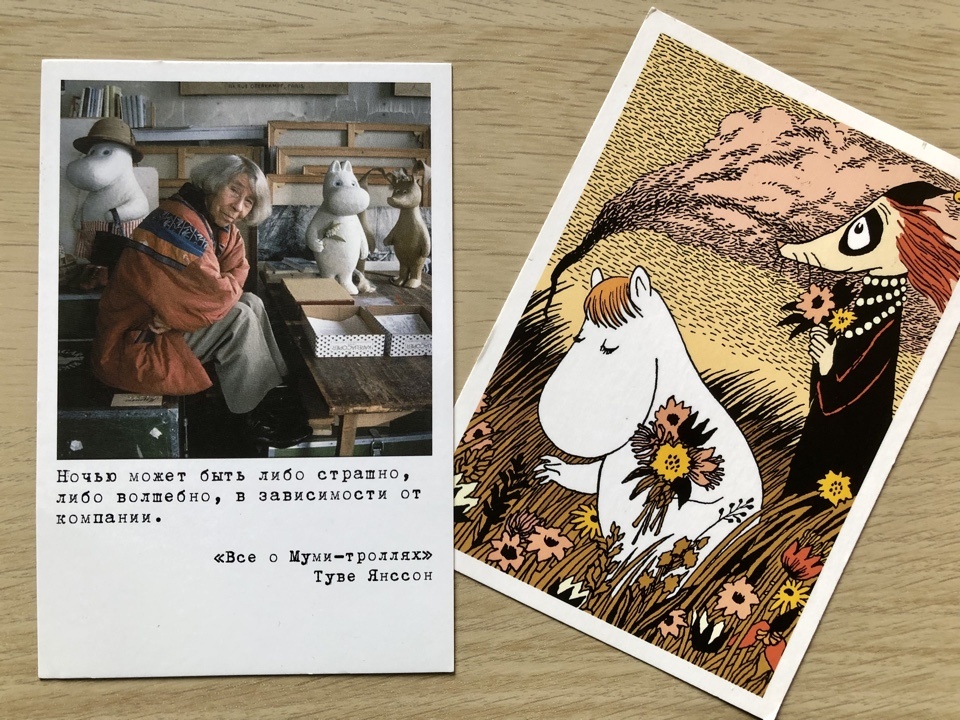 На этих открытках — работы современных художников, одни похожи на оригинальные рисунки Туве Янссон, другие — не особенно. А вам какие-нибудь понравились?