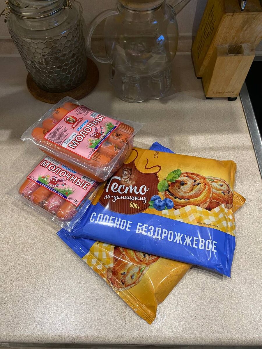 Сосиски в слоёном тесте – это классическое блюдо, которое нравится и детям, и взрослым. Это идеальный вариант для быстрого перекуса, пикника или праздничного стола. В этом посте я поделюсь с вами рецептом, как приготовить вкусные сосиски в слоёном тесте с хрустящей корочкой и золотистой помазкой из яичного желтка. Этот рецепт прост в исполнении и требует минимум времени и ингредиентов. Ингредиенты: Слоёное тесто – 1000 г (готовое, замороженное) Сосиски – 10-16 шт. Яйцо – 2 шт. Свежая зелень – для украшения (по желанию) Инструкция по приготовлению: Подготовка теста. Выньте замороженное слоёное тесто из морозильника и оставьте его при комнатной температуре на 15-20 минут, чтобы оно немного размягчилось. Это облегчит работу с тестом. Важно не переусердствовать, тесто должно оставаться холодным. Подготовка сосисок. Пока тесто размораживается, подготовьте сосиски. Если они в оболочке, аккуратно снимите её. Разделка теста. Разрежьте пласт теста на 4 полоски. Пальцами примните до нужно
