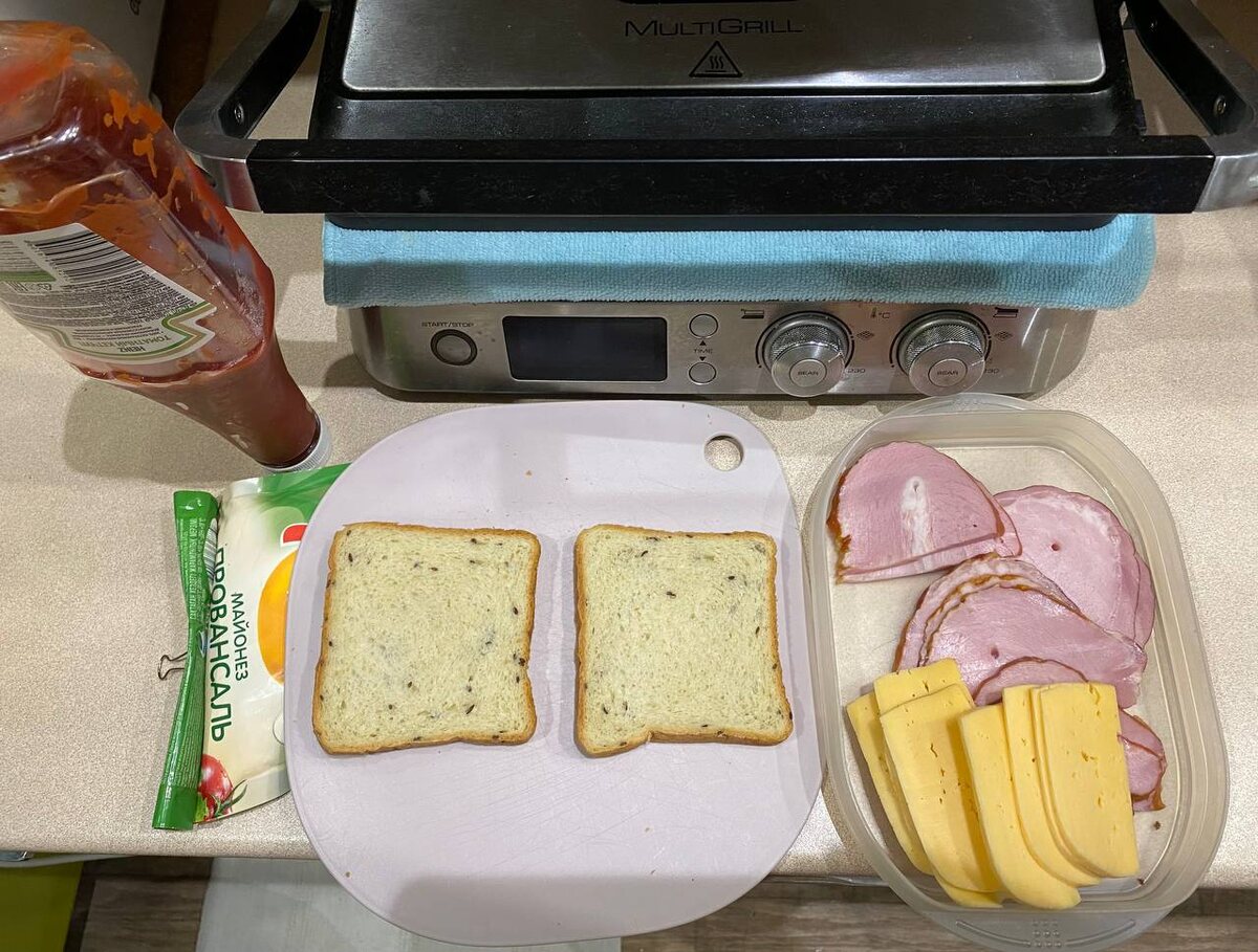 Вот рецепт приготовления сендвичей из сыра, мяса х/к, с майонезом и кетчупом на гриле: Ингредиенты: 8 ломтиков белого хлеба для тостов 4 ломтиков мяса х/к 4 ломтика сыра (чеддер, гауда или другой по вашему вкусу) Майонез Кетчуп Листья салата (по желанию) Помидор, нарезанный кружочками (по желанию) Сборка сендвича: Возьмите четыре ломтика хлеба . На каждый ломтик хлеба нанесите тонкий слой майонеза и кетчупа по вкусу. Сверху положите по ломтику сыра. Затем положите по ломтику мяса на каждый ломтик хлеба с сыром. Добавьте по желанию нарезанные кружочки помидора. Закрытие сендвича: Накройте каждый сендвич оставшимися ломтиками хлеба . Жарка сендвичей на гриле: Разогрейте гриль до 200 градусов. Поместите сендвичи на гриль и закройте крышку гриля для равномерного поджаривания их до золотистой корочки 3 минуты. Подача: Готовые сендвичи разрежьте по диагонали и подавайте горячими. Приятного аппетита! ******* Все использованные продукты выбраны по собственного предпочтению и не несут