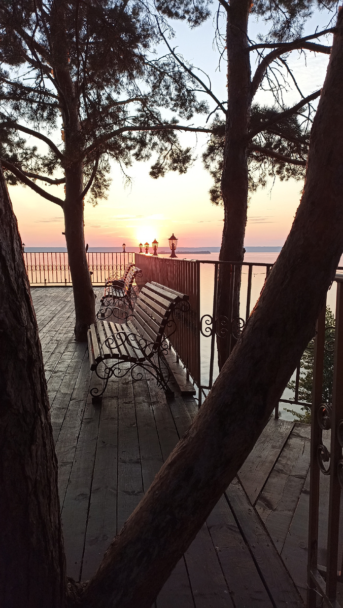На закат полюбовались и пошли к домику чай пить в беседке.