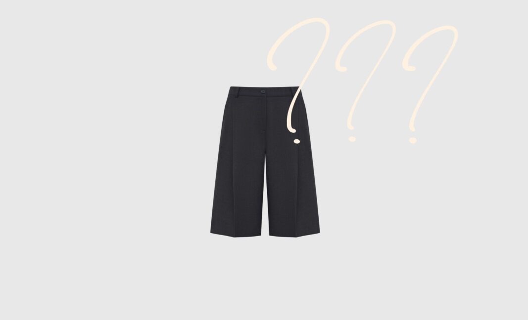 Бермуды с джинсовой отделкой в сером оттенке выбираем как вложение в деловой гардероб. Сочетать можно с жилетом бренда – команда переосмыслила модель, добавив глубокое декольте и карманы.
