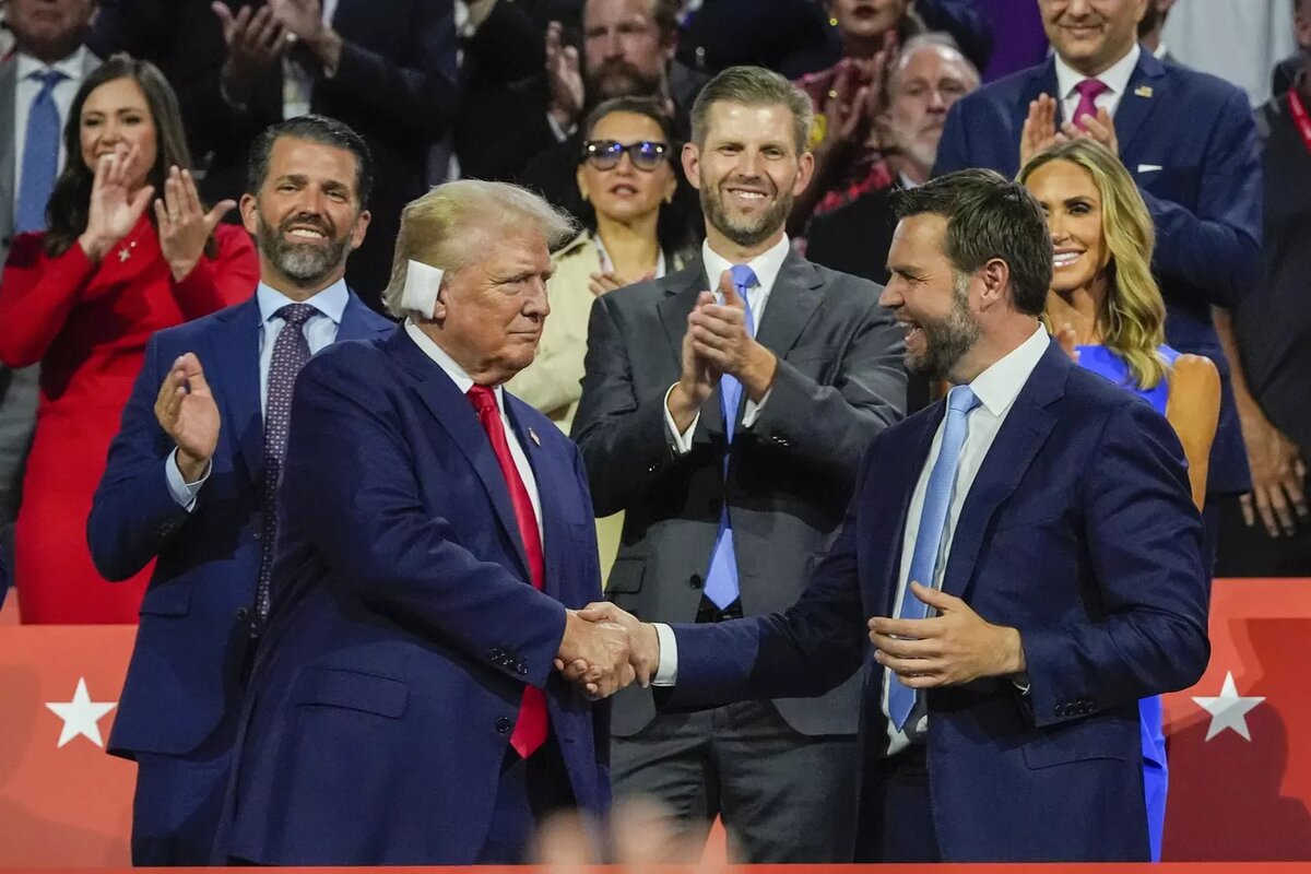 Он вошёл в зал под бурные аплодисменты с повязкой на правом ухе. По настроениям в городе, среди однопартийцев Трампа больше нет ярых противников, как это было в 2016 году. Данное событие лишь подтвердило вполне ожидаемый результат — Трамп официально стал кандидатом в президенты. В поддержку политика выступил даже глава одного из самых крупных профсоюзов водителей Teamsters Шон О’Брайен. Ранее ни он, ни его предшественники никогда не посещали съезд республиканцев. На должность вице-президента был выдвинут 39-летний сенатор от штата Огайо Джеймс Вэнс. Этот политик имеет богатый опыт работы: он служил в морской пехоте, участвовал в войне в Ираке, работал юристом в Кремниевой долине и руководил венчурным бизнесом. В 2016 году он критиковал Трампа, но сейчас активно участвует в его предвыборной кампании. Европейские чиновники назвали выдвижение Вэнса "катастрофой" для Киева. "Я должен быть честен с вами: мне действительно все равно, что так или иначе произойдет с Украиной", — заявил кандид