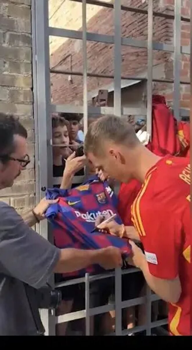 Дани Ольмо во время раздачи автографов фанатам подписать футболку «Барселоны»! «Будет видно», - также сказал игрок одному из фанатов, который спросил его, присоединится ли он к «Барсе» этим летом. Считается, что Ольмо входит в число целей сине-гранатовых на это лето, однако, он не в приоритете «Барсы». «Атлетико Мадрид» также сильно заинтересован в подписании игрока, как стало известно в ближайшие дни. Оценочная стоимость 26-летнего хавбека составляет 50 миллионов евро. В прошлом сезоне он забил 13 голов в 25 матчах за «РБ Лейпциг» и стал одним из лучших игроков Евро-2024. Дани Ольмо был частью «Ла Масии» с 2007 по 2014 год.