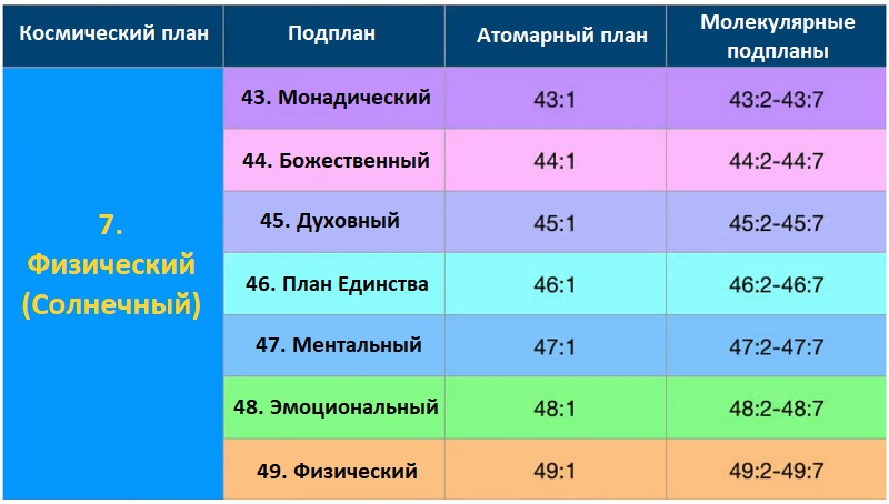 Каждый план материи имеет семь подпланов. Наша монада пребывает в постоянном атоме или молекуле на одном из этих планов, но объективно сосредоточена на одном из подпланов. По мере того как ее сознание расширяется, ее фокус распространяется на все более и более высокие подпланы, пока она в конечном итоге не изменит свое местоположение с одной постоянной структуры на другую, это называется посвящением, и мы принимаем три из них, проходя через 4-е Царство Природы. Посвящение (!). Теперь есть интересная тема для еще одной презентации!