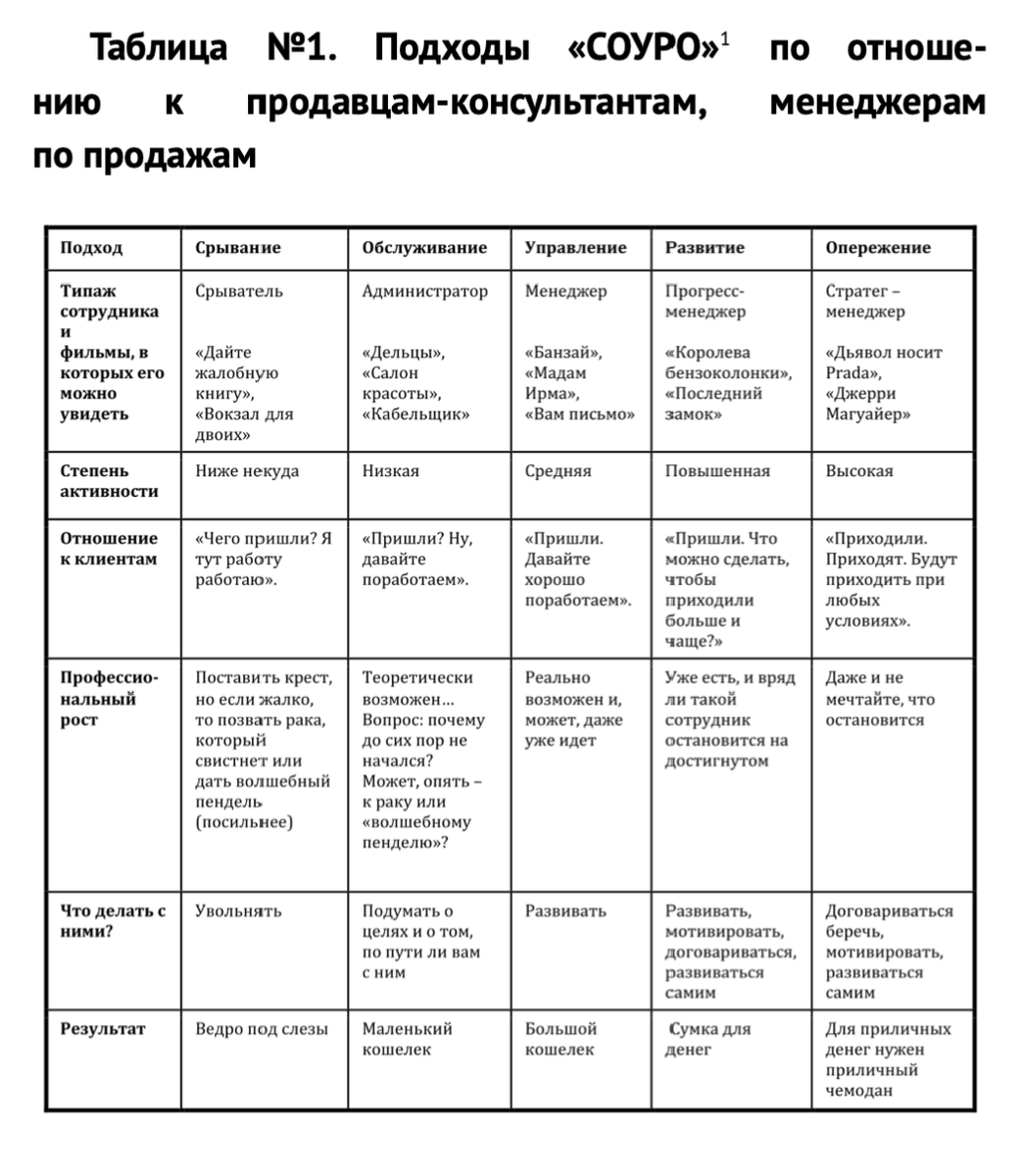 С менеджером, работающим согласно подходу «управление», становится интересно. Он работает по принципу: «Пришли клиенты. Давайте хорошо поработаем». И ведь работает! В такого сотрудника уже можно вкладываться, потому что он и сам в себя вкладывается – учится, читает, развивается, анализирует, ищет новые возможности и новые решения. У него соответствующий внешний вид, интеллигентная и доброжелательная речь. Он активен, инициативен, не боится выявлять потребности, предлагать клиенту альтернативы, в том числе и лучшие по качеству, более дорогие по цене. Таких менеджеров можно встретить на высококонкурентных рынках, например, рынке автомобилей, рынке банковских услуг.